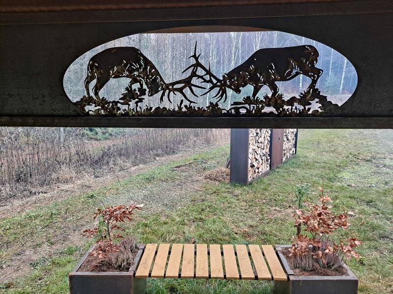 Cortenstalen prieel met 6 staanders van cortenstaal, hierdoor krijgt het tuinhuisje een honingraatvorm. We gaan dit unieke prieel gebruiken in onze showtuin. In de prieel komt vanzelfsprekend een VuuR grill, cortenstalen meubels en diverse soorten houtopslag.